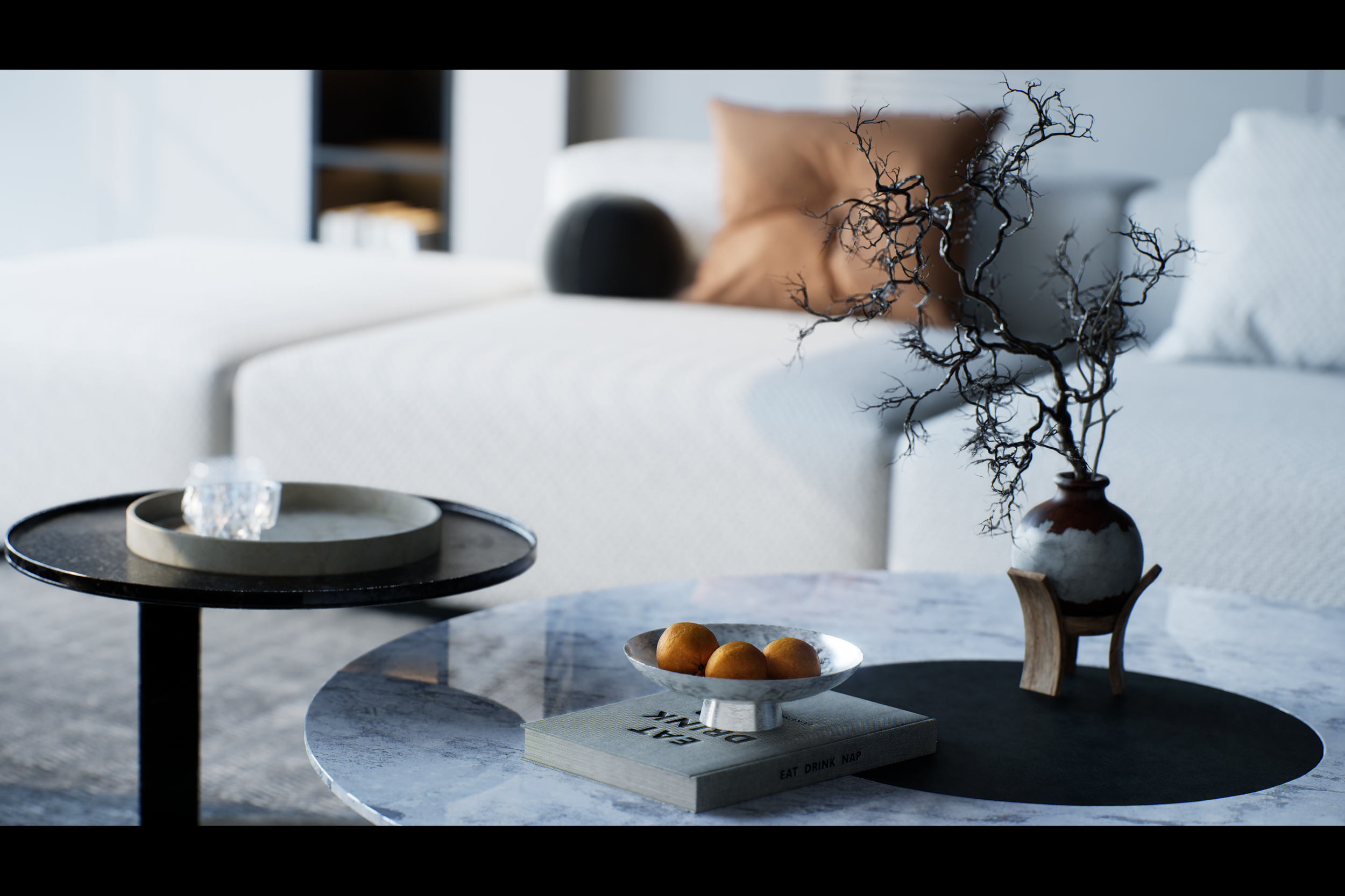 A series of images and video clips to encapsulate a modest but contemporary city apartment - Scene modelled by ArchViz Phi